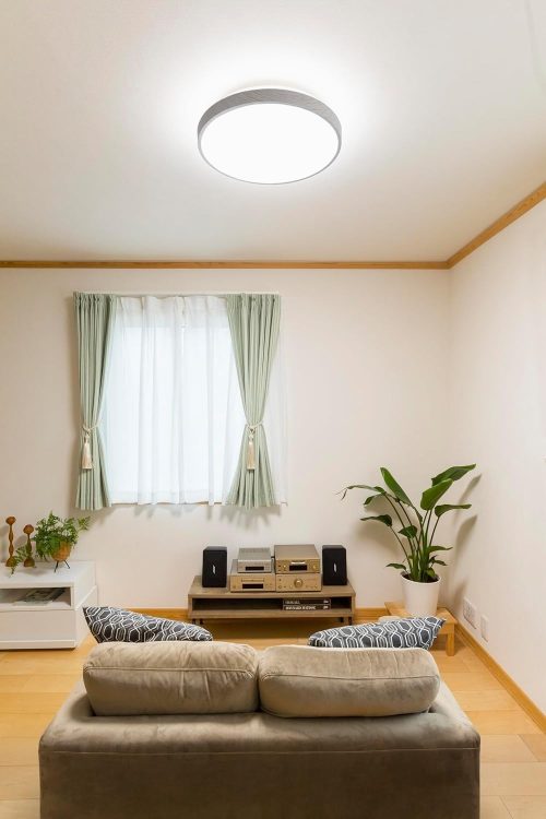 眩しさは軽減されており、天井が低いリビングにもおすすめです。シンプルで清潔感があるデザインは、ナチュラル風やモダン風など幅広いインテリアとマッチします。