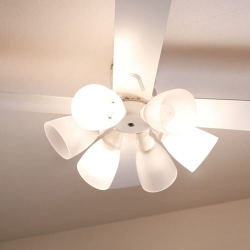 ファン付きのリビング照明は、サーキュレーターのように室内の空気を循環させてくれるのが魅力。エアコンと併用することで温度ムラの解消に繋がり、省エネ効果が期待できます。