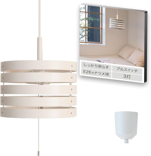 本体にはプルスイッチ付き。紐を引くたびに全灯・半灯・常夜灯・消灯で、点灯モードを切り替えられます。明るさを簡単に調節できて、使い勝手も良好なモデルです。