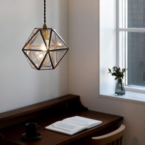 宝石のような美しい多面体のフォルムがおしゃれなリビング照明です。艶のあるカットガラスで電球を包み込んだ、特徴的なデザインが魅力。細部にはヴィンテージ風の加工が施されており、消灯中も美しいインテリアとして楽しめます。