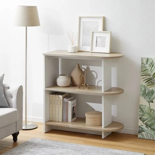 ゆるやかな曲線を描いたエッジラインが印象的なオープンラックです。オーク材の棚板とホワイト化粧繊維板の仕切りを組み合わせたバイカラーが特徴。ナチュラルな雰囲気を好む方におすすめです。