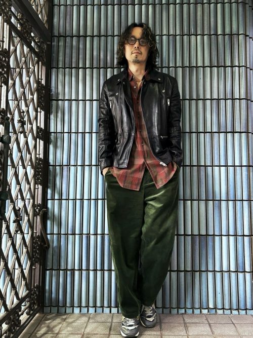 レザー×ネルシャツのアメカジコーデ