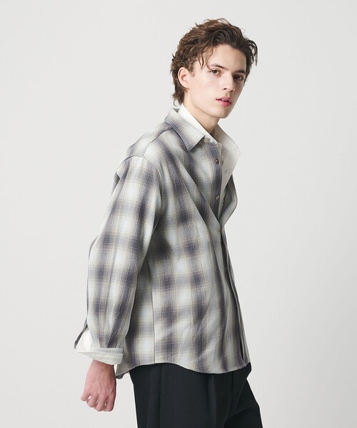 グラデーションが印象的なオンブレチェック柄を採用した、コットン100%のネルシャツです。太番手糸を用いた変形ビエラ素材はシャリ感とドライタッチを持ち、ワッシャー加工による自然なゆらぎが軽やかな着心地を生み出します。通年使いにおすすめのアイテムです。