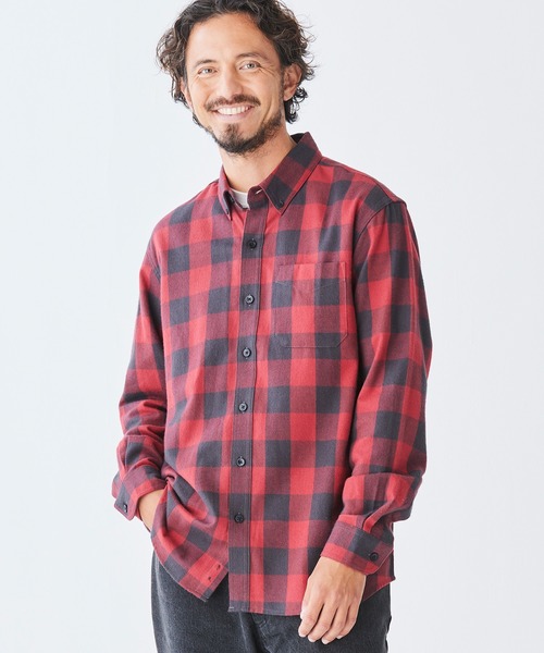 あたたかみのあるコットンフランネル生地を採用したボタンダウンシャツ。チェック柄を全体にあしらい、カジュアルな印象を与えます。スプレッドカラーを採用し、胸にはパッチポケットを配置しているのもポイントです。