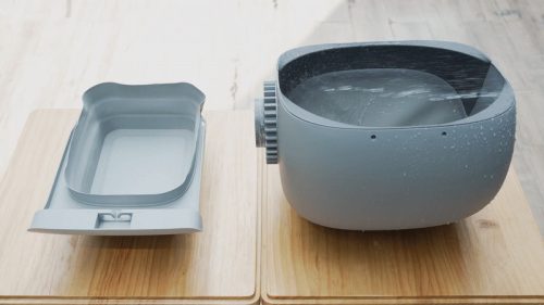 10Lの密閉型ダストボックスと自動消臭ファンを搭載した、ニオイをしっかり抑える猫用自動トイレ。猫がトイレから出ると重量センサーが感知し、ドラムが回転して固まった砂をダストボックスへ自動的に分離します。
