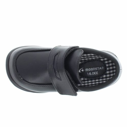子供の足の成長に配慮した機能的なフォーマルシューズです。つま先にゆとりを持たせた設計により、指先が自由に動かせます。かかと部分はしっかりとした箱型構造で、子供のやわらかい足をサポート。甲バンドで脱ぎ履きがラクに行えるのもポイントです。