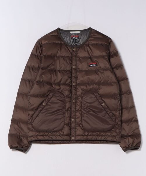 マットなナイロン素材で仕上げたノーカラータイプのライトダウンジャケットです。軽量ダウンを使用し、細幅のステッチで膨らみを抑えることで首元もすっきりと見える仕上がり。シンプルなデザインで幅広いスタイリングに馴染みます。