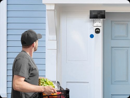 約83°の広い水平画角により、玄関先や駐車場を広範囲に監視できます。また、内蔵マイクとスピーカーにより、警告や通話機能にも対応。カメラ越しに訪問者へ声をかけられるので、留守中の来客対応にも便利です。