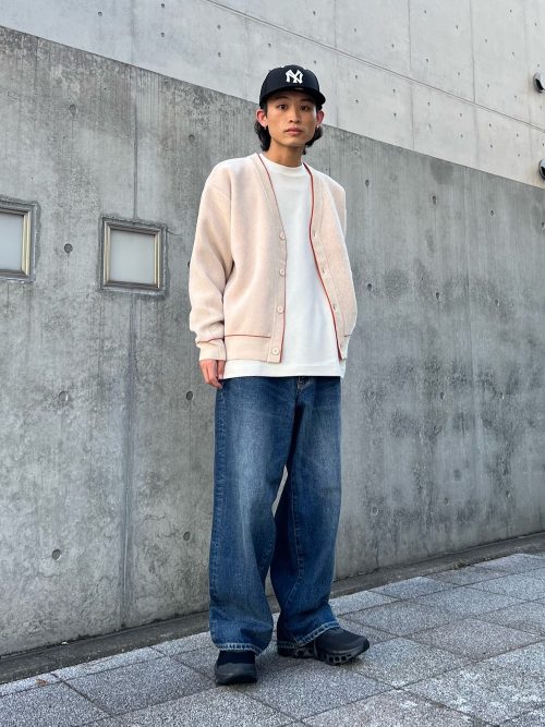 ライトカラーの色味が90年代らしさを演出。スニーカーに裾をダボつかせて穿くスタイリングが楽しめます。
