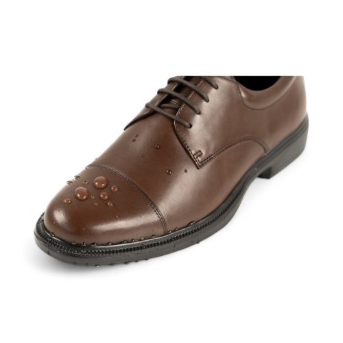 晴れの日も雨の日も頼りになる、全天候型ビジネスシューズ。 水を通しにくい防水レザーのアッパーが特徴です。セラミックとクルミ素材を配合したソールは、濡れた路面で滑りにくい設計。軽やかな歩行を実感できる軽量なつくりも魅力です。