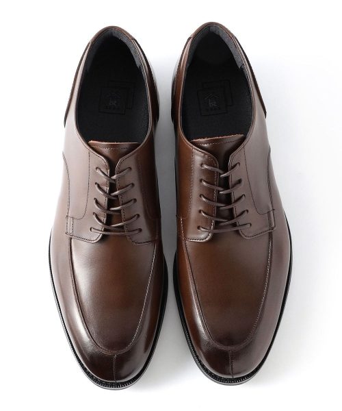 ドレスシューズの外観にスニーカーの履き心地を併せ持つUチップタイプのビジネスシューズ。適度に力の抜けたデザインは、ドレスからジャケットスタイルまで幅広くマッチします。かかと周りのフィット感が良好。加えて、指周りにゆとりを持たせた設計で圧迫感なく着用できるのが魅力です。