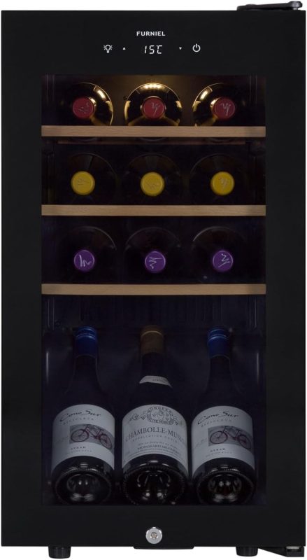本体サイズは約幅36×奥行41×高さ86cmで、最大15本のワインボトルを収納可能。庫内中央にはガラス窓にぴったり収まるよう、ボトルを1本立てて保管できるスペースが設けられているので、見せる収納も楽しめます。