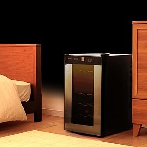 静音設計が魅力の小型ワインセラー。ペルチェ方式を採用しており、振動が少なく運転音が静かです。リビングや寝室など、場所を選ばず設置しやすいのが特徴です。