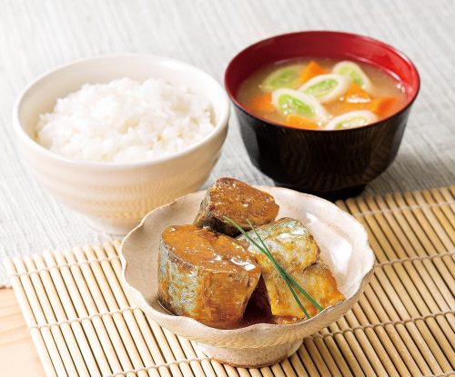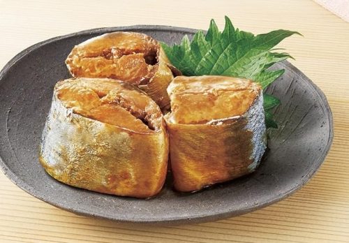 日本で水揚げされたサバを醤油と砂糖で甘辛く煮付けたサバ缶。ごはんのおかずにぴったりな、しっかりとした味付けが特徴です。