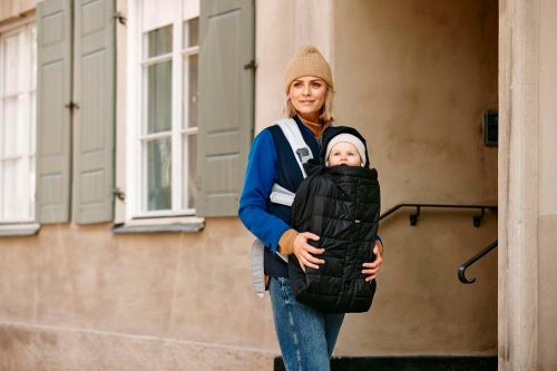 ボタンで簡単にサイズ調節ができ、新生児から2歳頃まで成長に合わせて使える抱っこ紐用防寒ケープ。すべてのベビービョルンの抱っこ紐と互換性があるアイテムです。