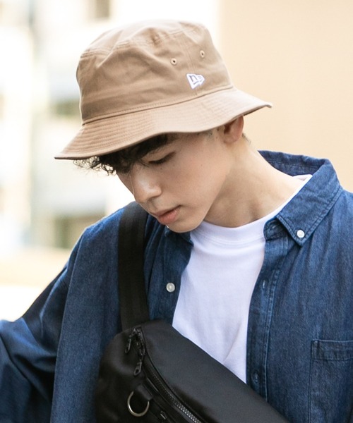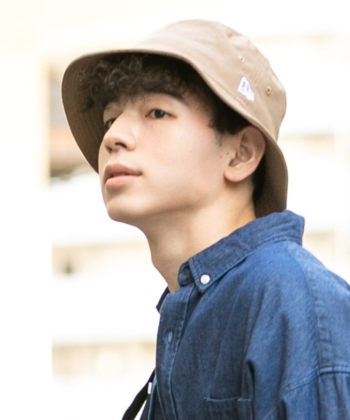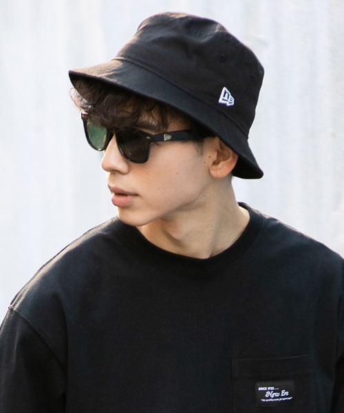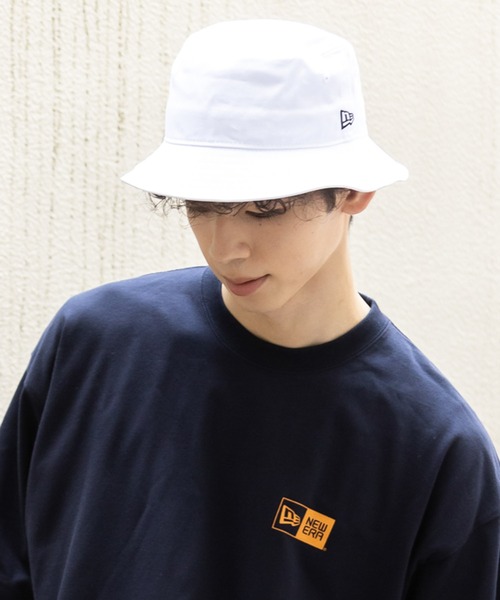 サイドに小さなブランドロゴがあしらわれた、ニューエラのシンプルなバケットハット。バケツをひっくり返したようなシルエットでデザインされており、トップは平らで短すぎず長すぎないツバが特徴です。