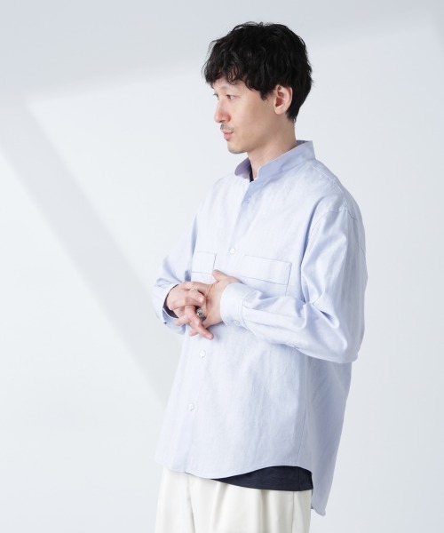 ナノ・ユニバース(NANO universe) BELGIUM LINEN FABRICS リネンコットンスタンドカラーシャツ