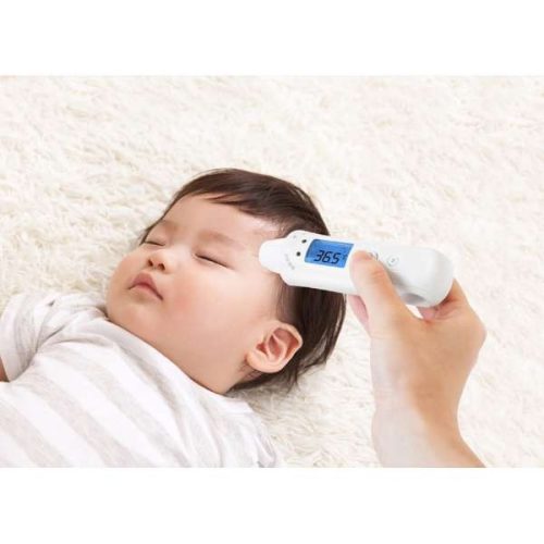 3種類の測定モードを備えた、多機能な非接触体温計。おでこにかざすだけで最短1秒で検温でき、赤ちゃんに負担がかかりにくいのがメリットです。過去25回分の測定結果を記録できるため、日々の体調管理にも役立ちます。