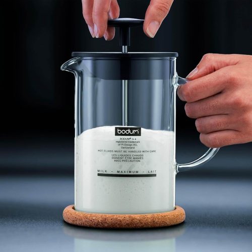 便利なミルクポットがセットになったミルクフォーマーです。耐熱ガラスを使用しているのが特徴。牛乳を入れて電子レンジであたためたり、使用後に食洗機で洗ったりと手軽に使用できます。目盛り線付きで、簡単に牛乳を計量できる点もメリットです。