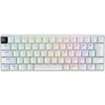 60%のコンパクトな白いゲーミングキーボードです。マウスの操作エリアをできるだけ広く取りたい方はもちろん、斜め置きで使いたい方などにもおすすめのモデル。2.4GHzのLIGHTSPEEDワイヤレス接続に対応しているため、ワイヤレスでのプレイが快適に楽しめます。Bluetoothと有線接続にも対応するなど、接続性は良好です。