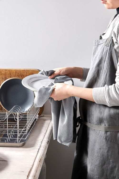 食器やグラスをきれいに拭き上げたいなら、リネン素材がおすすめ。吸水性と速乾性に優れており、毛羽立ちにくいのが魅力です。使い始めは少し硬く感じることがありますが、使ううちに徐々にやわらかく馴染んできます。