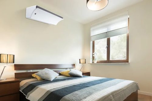 高さを抑えて設計されているハイグレードモデルのエアコンです。280mmのスペースがあれば設置できるため、カーテンレールの上にも設置しやすい設計です。