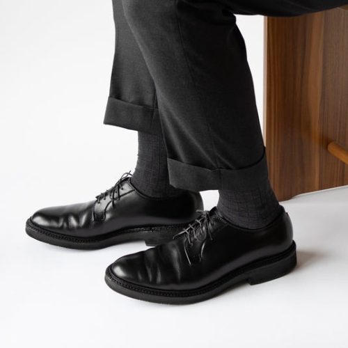 次に重要なのは靴下の長さ。座ったり足を組んだりしたときに、ズボンの裾から素肌が見えるのはマナー違反とされています。すねが見えないように、ふくらはぎが隠れる長さのモノを選んでみてください。