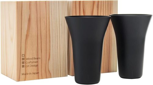 約口径90×高さ126mmで、満水容量は約360ml。ビールやハイボール、アイスコーヒーなどさまざまな飲み物を楽しめます。重さは約80g前後と軽量で扱いやすく、杉箱入りでギフトにもぴったりです。