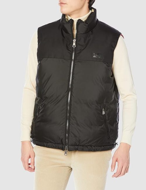 表と裏で異なるデザインを楽しめるリバーシブル仕様のダウンベスト。表はアイコニックなチェック柄、裏はシンプルな黒色で、気分やコーディネートに合わせて着回せます。