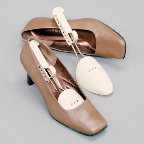 靴の内部に挿入する足型の器具で、靴の型崩れを防ぐのが特徴。木製・プラスチック製・金属製などがあり、特に木製は調湿・消臭効果に優れているとされ、湿気やニオイを吸収します。