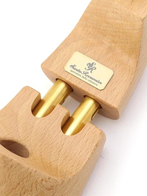 ネジ式のシューキーパーは、つま先とかかとのパーツを金属で連結し、中央のネジを回して靴内部の長さと張り具合を調整するタイプです。バネの力に頼らず、ネジの回転で細かく圧力をコントロールできるのが魅力。革のやわらかさや靴の種類に合わせて調整できます。