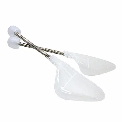 バネ式のシューキーパーは、つま先とかかとの間に金属製のバネを搭載したタイプです。バネを押し縮めて靴に挿入すると、バネの張力で靴を前後方向に押し広げ、型崩れや履きジワを防ぎます。