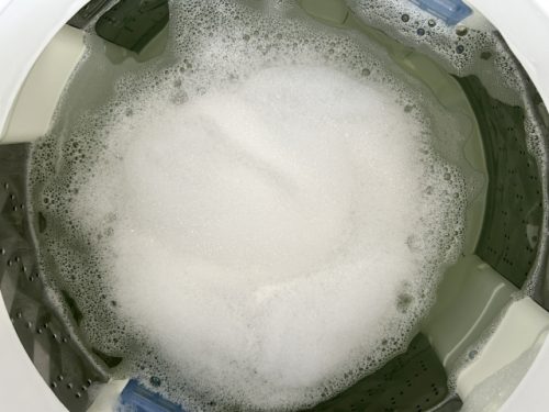酸素系は、発生する泡の力で洗濯槽に付着したカビや汚れを物理的に剝がし取ります。浮き上がった汚れが目に見えやすいのもポイントです。