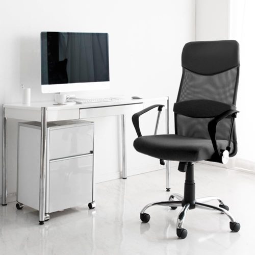 背中部分と座面には通気性に優れたメッシュ生地を採用し、年間を通して快適な座り心地。ロッキング機能や好みで着脱できる肘掛けも備えています。