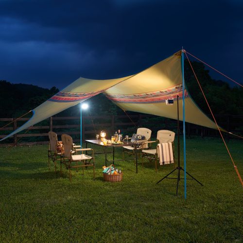 光色を電球色・昼白色・昼光色で切り替え可能。テントの中ではあたたかい光、食事のときは明るい光など、シーンに応じて使い分けられます。また、専用ケースで安全に持ち運べるのもメリット。一台で照明と電源を確保したい方や機能性を重視する方にぴったりです。