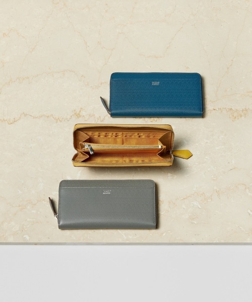 メッシュ柄をエンボス加工であしらっている、こだわりのレザーで仕立てられた長財布。収納部をラウンドファスナーで閉じられる設計で、中身を落とす心配なく使用できます。また、ファスナーの滑りがよく、スムーズに開閉可能です。