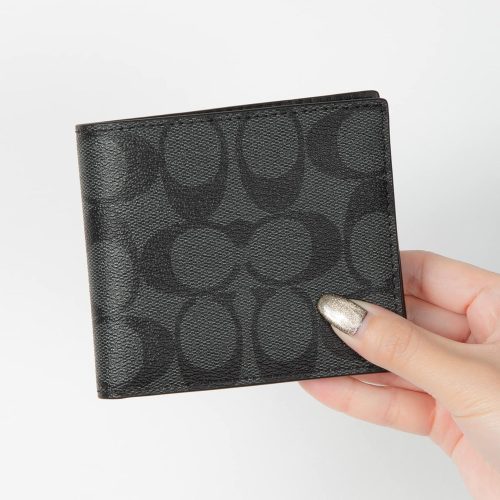コーチらしいシグネチャーデザインのメンズ財布です。サイズは約高さ9.5×幅10.5×奥行き2cm。持ち運びに便利なコンパクトサイズなので、ポケットなどに入れて気軽に持ち運べます。
