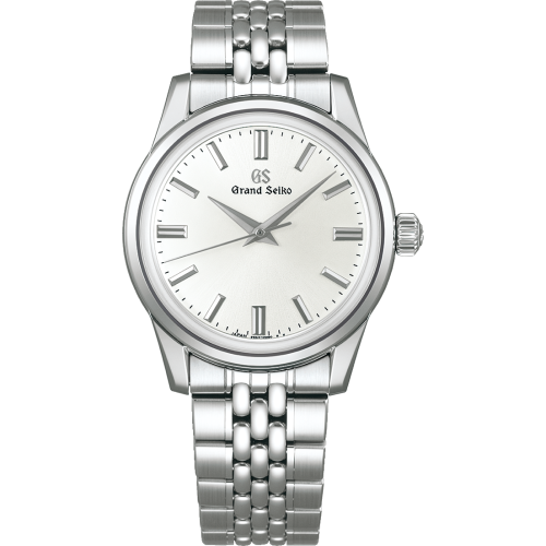 文字盤は、バーインデックスと3針を組み合わせたシンプルなデザイン。12時位置にグランドセイコーのロゴを配置しているほか、3時位置には日付表示用の窓を配置しています。