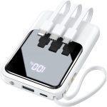 ケーブルが内蔵されたiPhone対応モバイルバッテリー。22000mAhの容量でiPhoneを複数回フル充電でき、長時間の外出や旅行でも安心です。急速充電に対応し、短時間でデバイスを素早く充電できます。