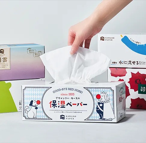 フレッシュパルプ100%の紙に、保湿成分を配合している高級ティッシュ。やわらかく、しっとりとなめらかな肌触りが特徴です。