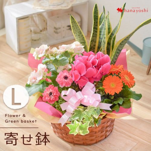花由(hanayoshi) 季節のおまかせ花鉢とグリーンの寄せ入れ Lサイズ