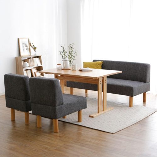 ダイニングソファを初めて選ぶ方には、テーブルとのセット製品がおすすめ。ソファの座面の高さとテーブルの高さがバランスよく設計されているため、食事や作業がしやすい姿勢を保てます。デザインの統一感が出るので、簡単におしゃれな空間を作れるのがポイントです。
