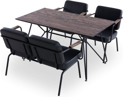2~4人家族におすすめのおしゃれなダイニングソファセット。1人掛けのソファ2脚と2人掛けソファ1脚、120cm幅のダイニングテーブルがセットになっています。狭い部屋でも圧迫感を与えないよう、背もたれや座面は低めに設計されています。