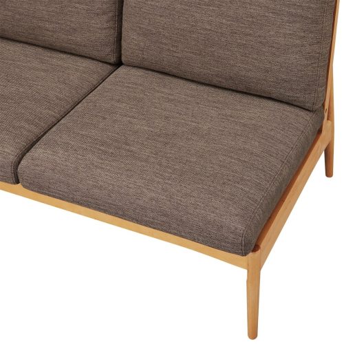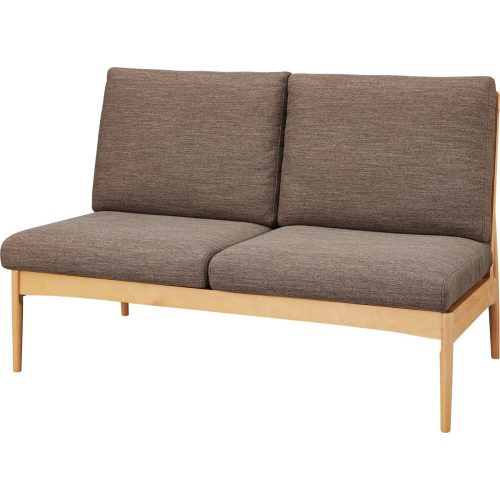 天然木の風合いがぬくもりを演出するリビングダイニングソファ。あたたかみのある天然木を木部に使用しているのが特徴です。座面はやわらかい素材感のファブリックカバーで、同シリーズの家具とあわせると部屋に統一感が生まれます。