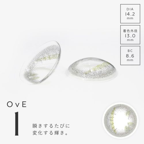 近視用としては11種類、乱視用は1種類展開。なかでも「OvE 1」は、左右非対称の複雑なデザインを採用しており、瞳に光が入り込んだような印象をもたらします。涙でうるんだような輝きも演出し、まばたきのたびに印象が変化していくのが魅力です。