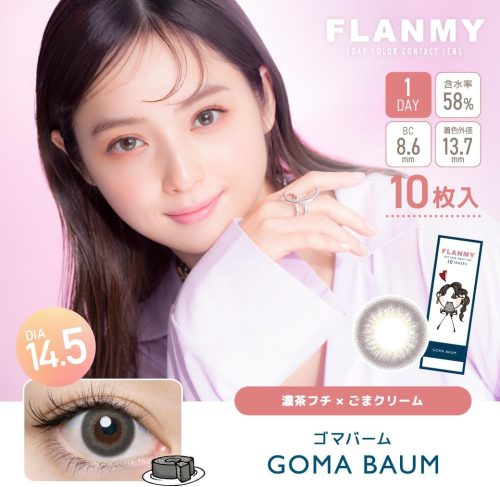ゴマ風味のクリームのようなもったりとした色味が特徴的なグレーカラコン。しっかりとしたグレー味を感じられるタイプながら、瞳にはなじみやすい色なのが魅力です。甘さ控えめで、媚びない印象の目元を演出します。