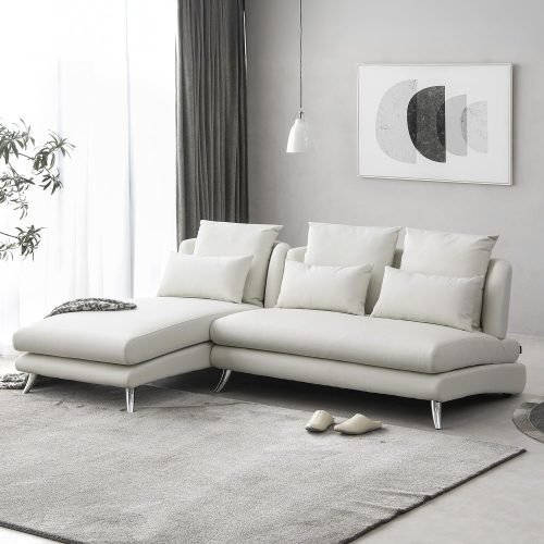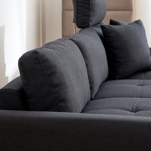 ファブリックとPVCのツートンデザインがおしゃれなカウチソファです。脚部にはステンレスを採用しており、アクセントとして映えるのが特徴。モダンでラグジュアリーな空間を演出できるおすすめモデルです。