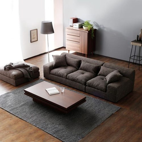 複数人で座れるモノであれば、友人や親戚が集まるホームパーティーなど、来客が多い場面でも活躍します。なかには、オットマン付きのタイプもラインナップ。レイアウトの自由度が高いモノを探している方はチェックしてみてください。