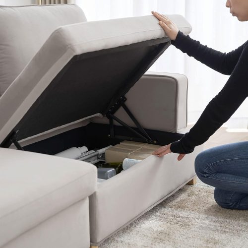 シート下には便利な収納スペースを搭載。工具を使わずにモジュールの配置を変えられるのも特徴です。ライフスタイルの変化に合わせて長く使いやすいソファを探している方におすすめのモデルです。