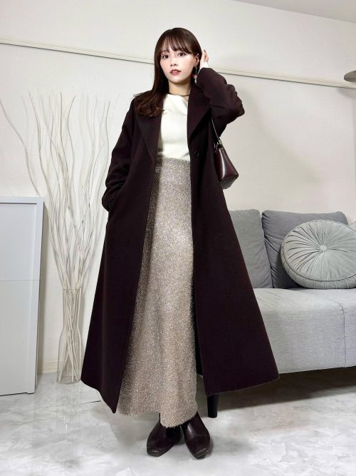 また、チェスターコートやシューズ、バッグをブラウン系のモノで統一し、洗練された雰囲気を演出しているのもポイント。ディナーやデートシーンにもおすすめのコーデです。大人っぽい着こなしがしたい方は、参考にしてみてください。